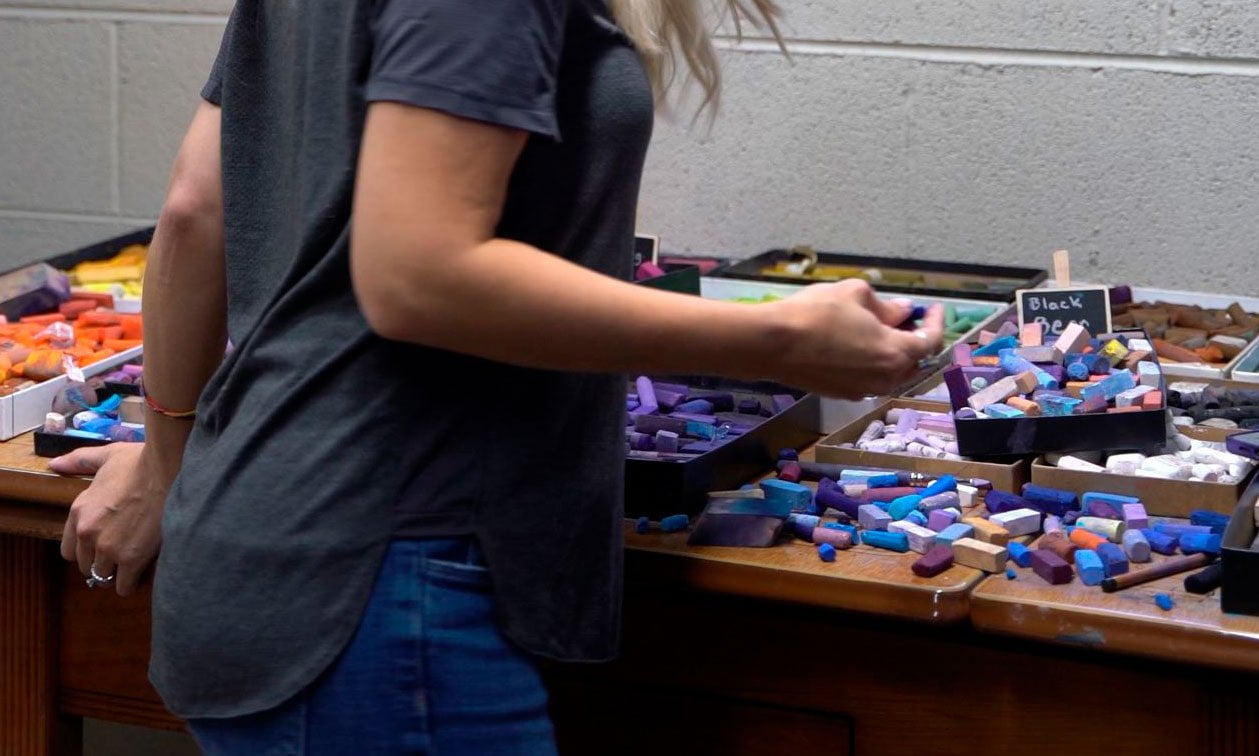 It all starts with the surface. I use a heavy sanded pastel paper designed to grip and hold the soft pastel. The paper comes on a giant roll, as big as me (now I know what you're thinking. I may be vertically challenged but still. A roll as tall as me!) First we mount the paper to board. This has three main advantages, it gives me a very firm surface to work on. Second, it prevents the paper from warping, wrinkling and bending over time, and finally it adds stability and structural support for framing these large works under glass.